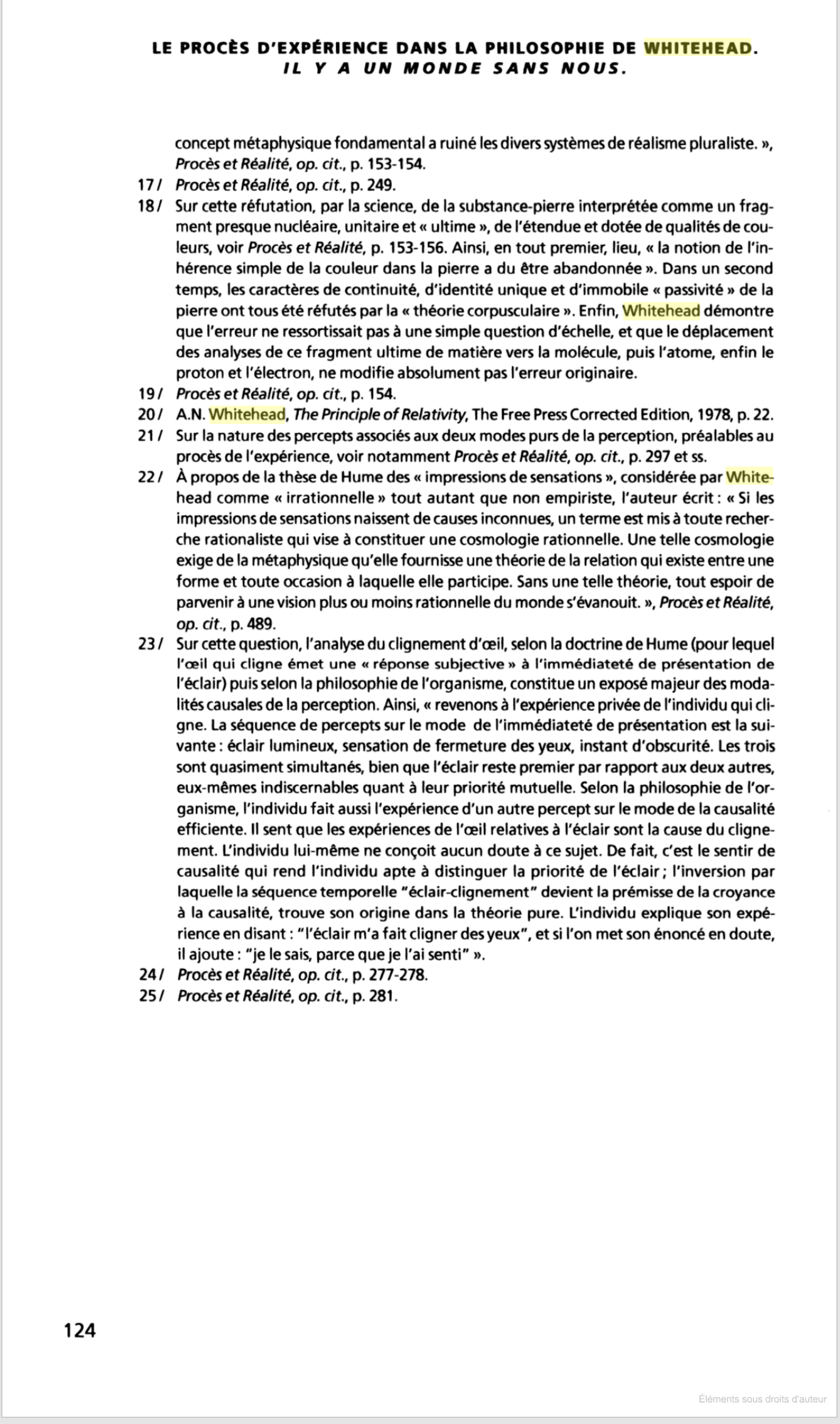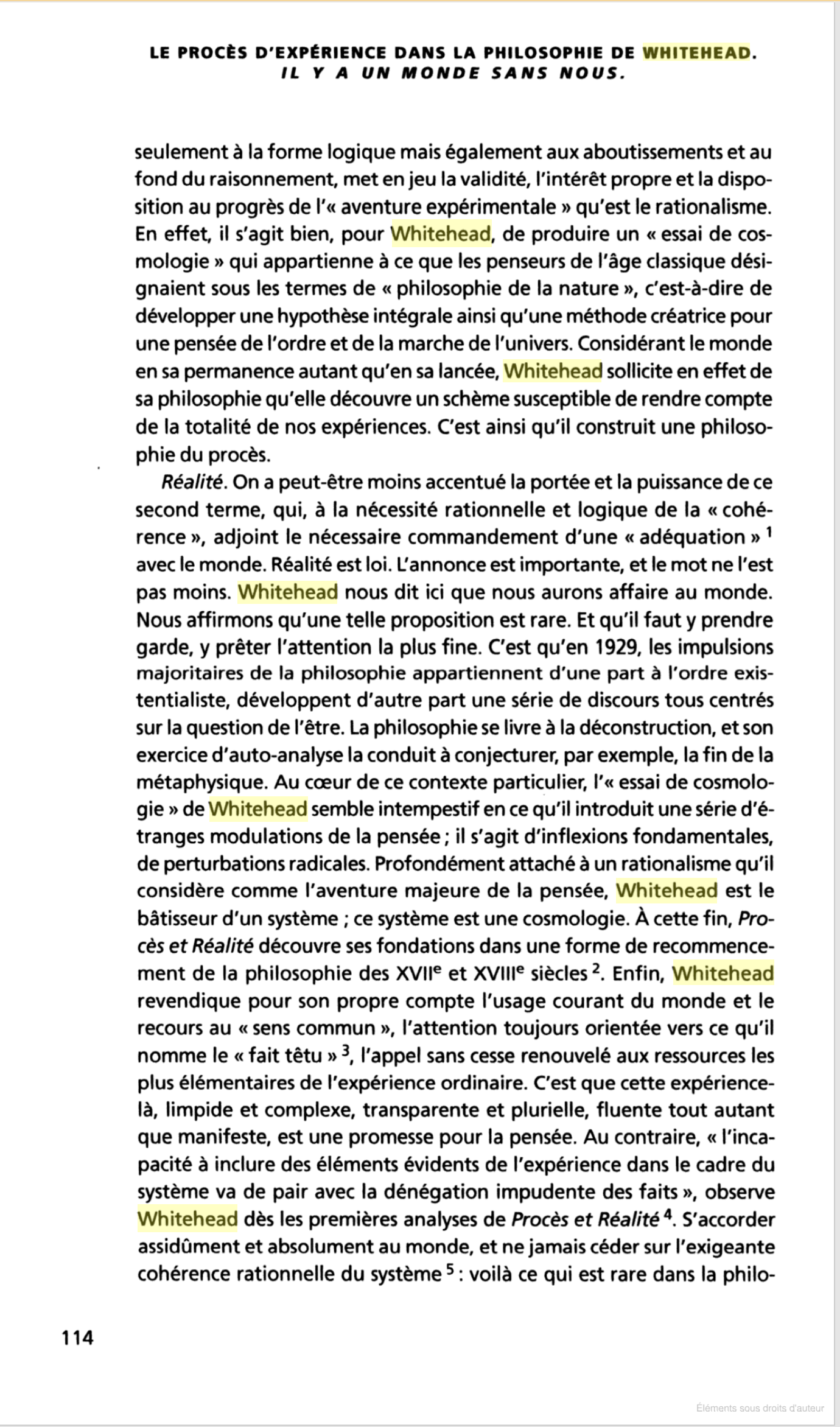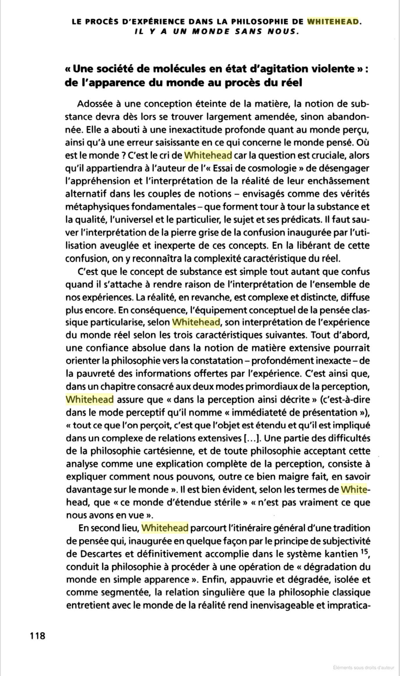 LE PROCÈS D'EXPÉRIENCE DANS LA PHILOSOPHIE DE WHITEHEAD
