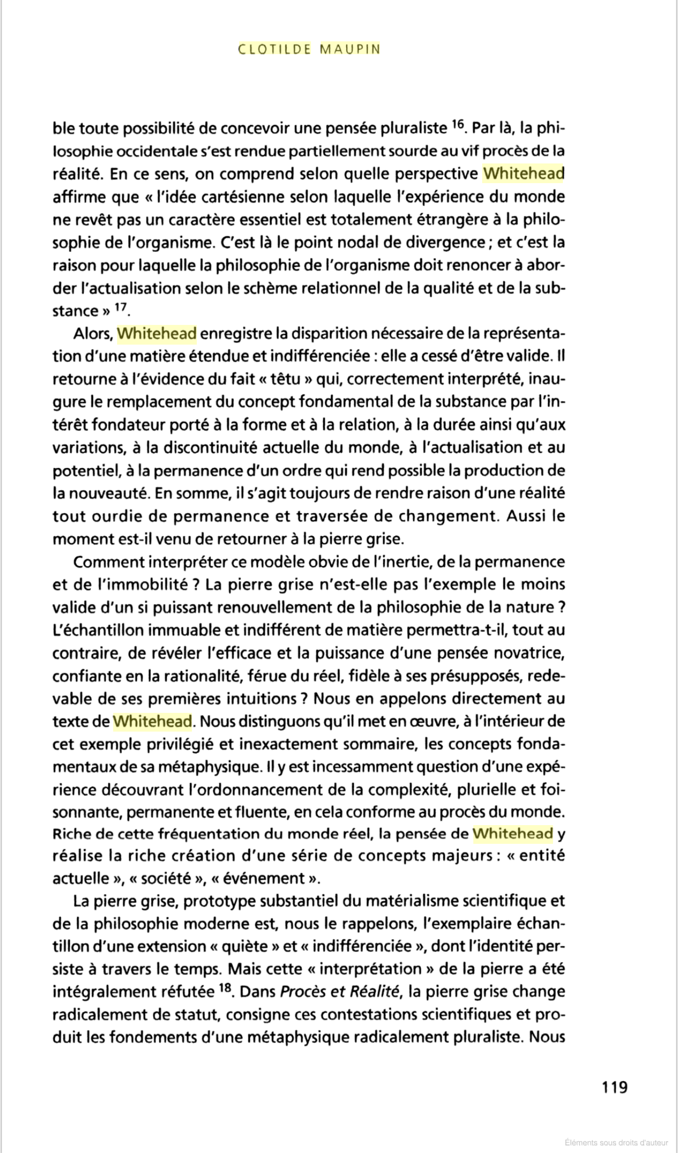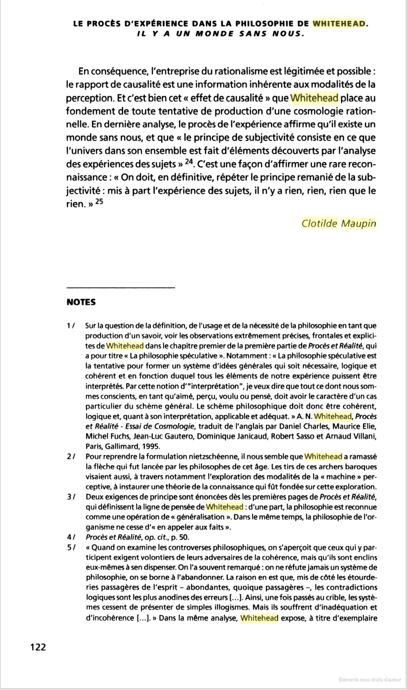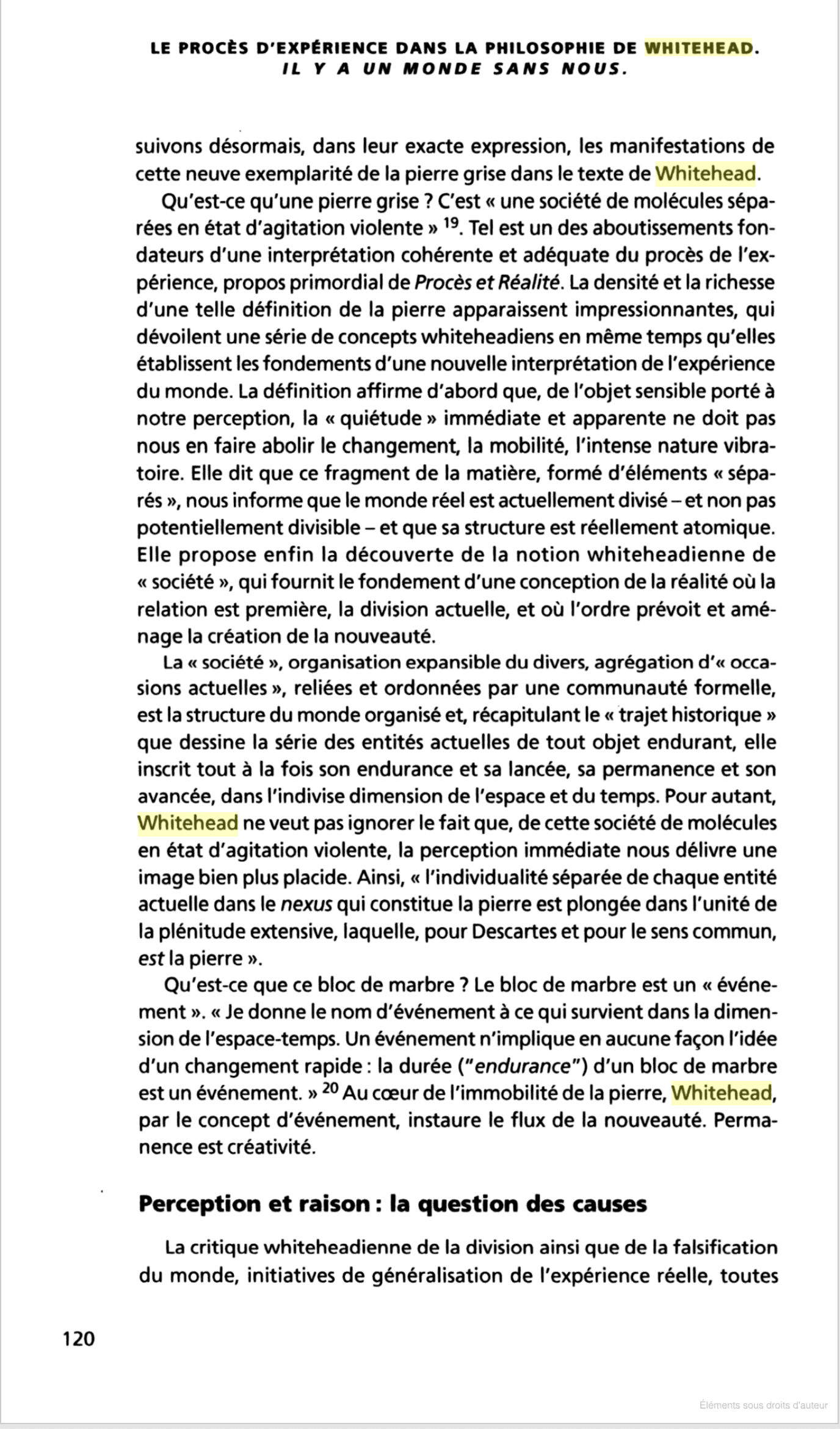 LE PROCÈS D'EXPÉRIENCE DANS LA PHILOSOPHIE DE WHITEHEAD